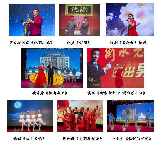 聯(lián)歡會(huì)在公司舞蹈隊(duì)帶來的《相逢春天》中正式拉開帷幕,表達(dá)了職工對(duì)公司明天最美好的祝福。緊接著,動(dòng)力車間的劉善春一首悠美動(dòng)聽的薩克斯獨(dú)奏《北國(guó)之春》,讓觀眾聽的如癡如醉,仿佛聞到了春天的氣息。制酒二車間沈明光、趙世威帶來的相聲《說酒》,以詼諧幽默的說詞,向觀眾闡述了自古至今“酒”成就了詩人許多關(guān)于“酒”的詩詞佳作。包二車間和鳳雙帶來的評(píng)劇《乾坤袋》選段讓大家領(lǐng)略到了評(píng)劇的魅力。營(yíng)銷公司谷麗君也把參加全國(guó)第四屆品牌故事演講比賽的作品帶到了舞臺(tái)上,《衡水老白干 喝出男人味》,向我們娓娓講述了解放前老一輩的老白干人英勇抗日,不屈不撓的抗戰(zhàn)精神,用血性、責(zé)任、擔(dān)當(dāng),將燕趙兒女的骨氣、豪氣和壯氣展現(xiàn)的淋漓盡致。制曲車間的舞蹈《天鵝湖》,精彩滑稽的表演不時(shí)讓觀眾捧腹大笑。包二車間何永安、周長(zhǎng)爽等帶來的歌伴舞《中國(guó)歌最美》,向觀眾傳遞了中國(guó)歌的魅力。制酒一車間郭金健等帶來的三句半《燦爛的明天》,將公司2016年所做出的成績(jī)一一做了匯報(bào),使廣大職工更加了解企業(yè)發(fā)展?fàn)顩r。