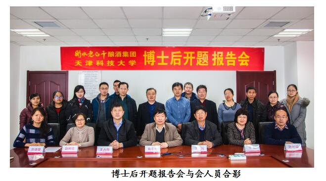 2017年12月20日上午,公司博士后開題報告會在酒都大廈1004會議室隆重召開,出席會議的有天津科技大學(xué)王敏院長、肖東光教授、趙樹欣教授、陳葉福教授、劉璐璐處長,集團公司副董事長張志民、酒業(yè)公司總經(jīng)理王占剛、酒業(yè)公司常務(wù)副總張煜行、技術(shù)中心主任李澤霞等。