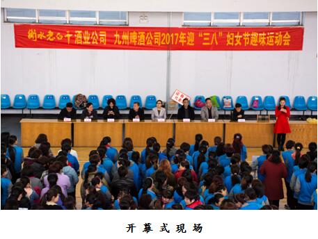 為慶祝“三八”國(guó)際婦女節(jié)的到來,老白干酒業(yè)公司、九州啤酒公司積極響應(yīng)集團(tuán)工會(huì)的號(hào)召,3月7日下午2:00,在酒都大廈文體活動(dòng)中心聯(lián)合舉辦了2017年慶“三八”趣味運(yùn)動(dòng)會(huì)。集團(tuán)公司工會(huì)主席王香茶、副主席周明,酒業(yè)公司副總經(jīng)理張煜行、李玉雷、劉勇、工會(huì)主席王建忠及九州啤酒公司領(lǐng)導(dǎo)參加了此次活動(dòng)。