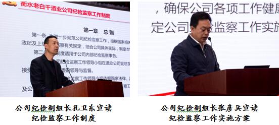 會議宣讀了《河北衡水老白干酒業(yè)股份有限公司紀檢監(jiān)察工作制度》和《河北衡水老白干酒業(yè)股份有限公司紀檢監(jiān)察工作實施方案》,提出了紀檢監(jiān)察工作的指導思想,公布了紀檢監(jiān)察工作領(lǐng)導小組成員名單、反映問題郵箱和電話,提出了紀檢監(jiān)察工作的八項重點工作。