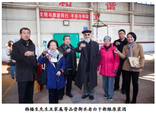 最后,由衡水白干酒業(yè)公司副總經(jīng)理張春生等有關(guān)領(lǐng)導(dǎo)陪同韓先生一行到衡水老白干生產(chǎn)廠區(qū)進(jìn)行了走訪參觀。張總對(duì)公司的發(fā)展歷程、品牌文化、古法釀造工藝特點(diǎn)等進(jìn)行了詳細(xì)解說(shuō),期間韓先生還品嘗了公司新釀出來(lái)的原漿酒,從萬(wàn)噸糧倉(cāng)到發(fā)酵釀酒,從原酒儲(chǔ)存再到成品生產(chǎn),整個(gè)釀造生產(chǎn)過(guò)程參觀下來(lái),韓先生對(duì)衡水老白干的發(fā)展深深嘆服,亦感慨萬(wàn)千:終于完成父親的夙愿!